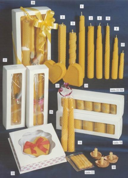 Svíčky vyrábím ručně z pravého včelího vosku. Z přírodního materiálu, ekologicky naprosto čistého produktu včely medonosné, s viditelnou strukturou stavby včelího díla. Mají mnoho různých provedení lišících se délkou hoření a vzhledem uzpůsobeným k různým příležitostem – rodinným i společenským. Speciální dekory a tvary jsou například na Vánoce či Velikonoce. Svíčka hoří stálým, jasným plamenem a příjemně voní medem.