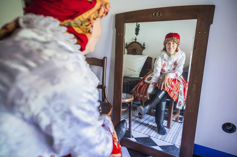 Můžete se obléct do lidového kroje a zažít postupné vrstvení a oblékání jednotlivých součástí, s povídáním o historii, vývoji a údržbě kroje.